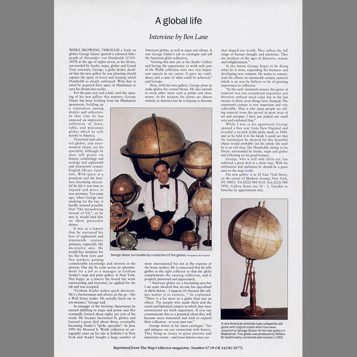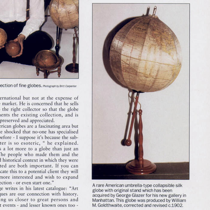 “American globes are a fascinating area but I am quite shocked that no-one has specialised in them before — I suppose it’s because the subject matter is so esoteric,” he explained. “There is a lot more to a globe than just an object. The people who made them and the social and historical context in which they were constructed are both important…”
