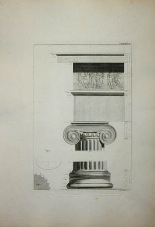 The first volume of The Antiquities of Athens was published by John Haberkorn in 1762 and was the only one to be published while both Stuart and Revett were living. John Nichols in London published the second and third volumes after Stuart’s death, Volume II in 1789, Volume III in 1794. Volume IV was compiled using Stuart’s papers and published by J. Taylor in 1816. A final supplemental volume was released in 1830 after much delay.