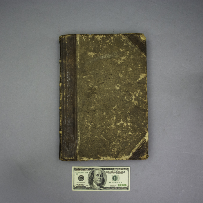 Condition: Contents generally very good with the usual overall light toning, wear, handling. Contemporaneous ink manuscript notes relating to astronomy on some of the maps, and contemporaneous manuscript index of maps on rear free end paper. Provenance inscriptions on front free end paper and title page. Blue ink ownership stamp on inside front cover. Leather spine, corners, and speckled boards considerably handled, abraded, chipped, dented and worn, but still solidly intact, the contents tight.