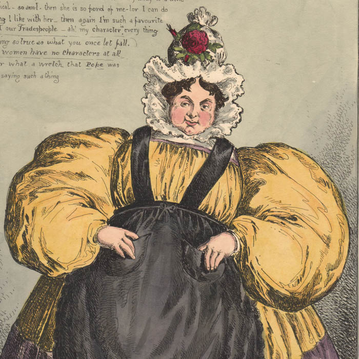 William Heath was a British caricaturist and illustrator. His illustrated books include his own Life of a Soldier (1823) and Sir John Bowring’s Minor Morals (1834). In the 1820s, he established himself as a leading caricaturist, first in Scotland for The Glasgow Looking Glass, and after 1827 in London, where he began signing his social and political satires “Paul Pry,” named after a busybody character from playwright John Poole’s 1825 comedy of the same name, so-called because he liked to pry into other people’s business. Heath also included a tiny sketch of Pry offering commentary from the lower margin of his prints. The Paul Pry device became so popular it was soon forged by other artists; within a few years, Heath abandoned it. He worked for the prolific publisher Thomas McLean, who published his fashion and society satires as Modern Oddities, and included his work in other collections and his monthly caricature magazine Looking Glass.