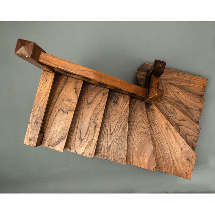 Miniature staircase models originated in a French guild system known as “compagnonnage,” especially during the 17th to 19th centuries. The staircases were the culminating project of an apprenticeship in order to be accepted into the guild as a master craftsman, demonstrating the applicant’s virtuosity in woodworking and design. The Smithsonian Cooper-Hewitt, National Design Museum has a major collection of these, and featured them in the exhibition of staircases donated by Eugene and Clare Thaw, Made to Scale: Staircase Masterpieces in 2006-2007.