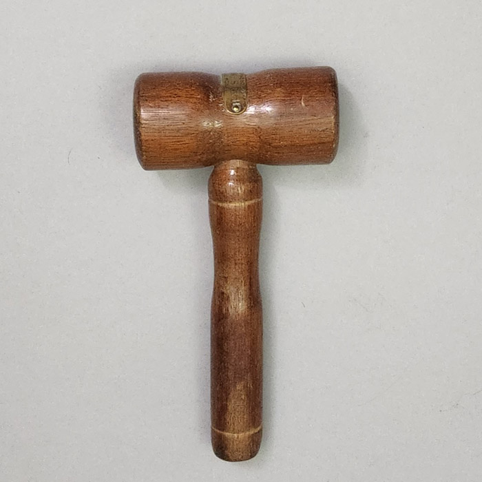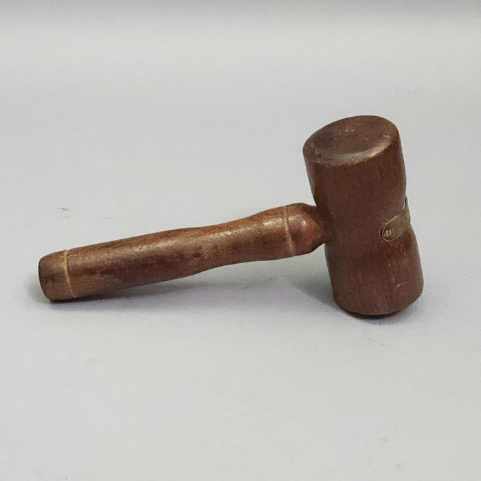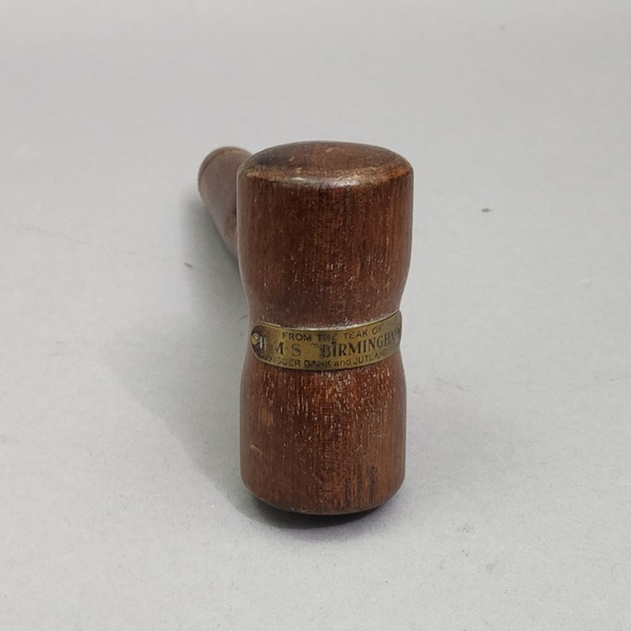 Given the gavel’s plaque, it can be dated as early as post-1916, possibly sourced from damaged wood removed in its early repair following the Battle of Jutland. Nonetheless, it is most likely that the gavel was crafted from salvaged wood during the ship’s breakup in 1931, memorializing the historical Allied naval victories among the British public. The turnings of the gavel are fairly simple. It is the only example of a relic gavel from the Birmingham that we have been able to locate, though less significant relics of this ship in the forms of miniature barrels and napkin rings are known.