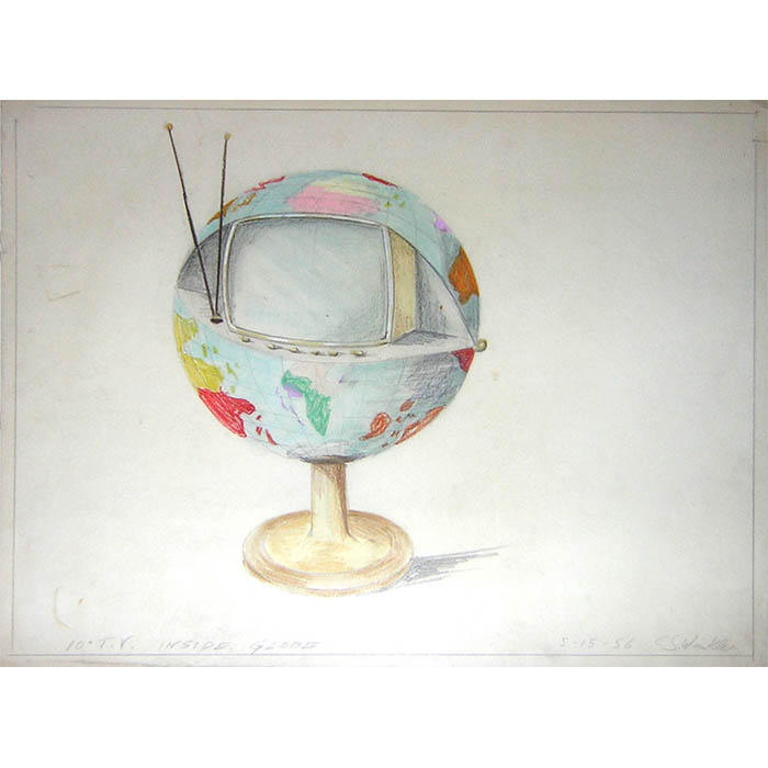 C. Speyer Winkler produced at least 110 concept drawings for the cases of televisions, including cabinets and rolling carts, for the Philco Corporation between 1953 to 1960. After the Soviet launch of Sputnik in 1957, the first satellite, the emphasis in industrial design generally shifted to a “space age” look. Winkler’s numerous designs for Philco followed this trend; they were often in a streamlined, modernist style of the period, though he also designed more traditional television cabinets in that period as well. A comparison between his concept drawings reveals that some of them made it to production, at least in a modified form.