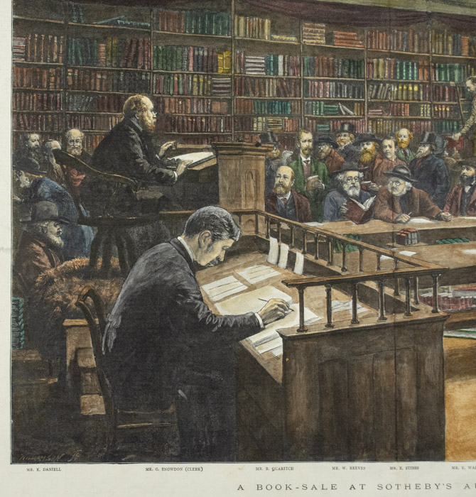 The Graphic was an illustrated London weekly newspaper launched in 1869 by William Luson Thomas (1830-1900). By 1882, advances in printing technology accelerated the process by which illustrations were converted to woodblocks for printing, so that pictures of events could be published within a few days, and The Graphic became a major publication employing over 1,000 people. It commissioned illustrations of current events from pole exploration to the flogging of a criminal at Newgate Prison, and slices of London life such as a Sotheby’s auction or a scene in a women’s twopenny lodging house. They also published well-regarded artistic illustrations of such subjects as a series on Shakespeare’s heroines. Hubert von Herkomer, one of the artists, wrote of its importance to social realist artists: “It is not too much to say that there was a visible change in the selection of subjects by painters in England after the advent of The Graphic. Mr. Thomas opened its pages to every phase of the story of our life; he led the rising artist into drawing subjects that might never have otherwise arrested his attention; he only asked that they “should be subjects of universal interest and of artistic value.” In 1889, Thomas and his company, H. R. Baines and Co, began publishing the first daily illustrated newspaper, the Daily Graphic. After he died in 1900, his son, Carmichael Thomas, ran the company. The Graphic ceased publication in 1932.