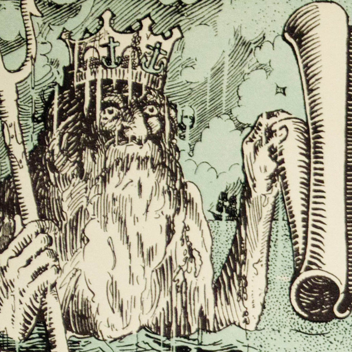 In the upper left corner, a mythological sea-drenched figure of Neptune holds the scrolled cartouche of the map, with a a narrative emphasizing the region’s unique attributes: