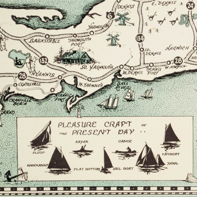 An inset scroll titled “Cape Cod Calls” further extols the virtues of the region as a vacation destination: