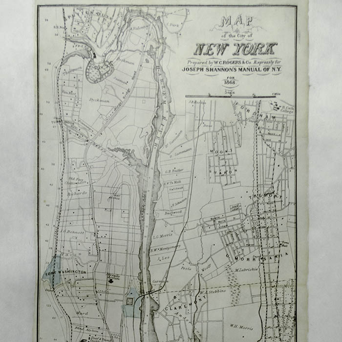 Full publication information: Map of the City of New York. Prepared by W.C. Rogers & Co. Expressly for Joseph Shannon’s Manual of N.Y. for 1868.