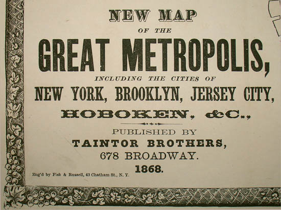 Full publication information: “Published by Taintor Brothers, 678 Broadway. 1868. Eng’d by Fisk & Russell, 43 Chatham St., N.Y.”