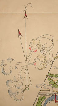 Map, Massachusetts, Concord, Pictorial, The Old Musketaquid Plantation, Helen Bodley, Vintage Print, 1928