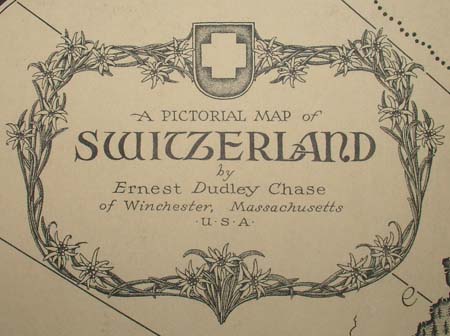 Map, Switzerland, Pictorial, Ernest Dudley Chase, Vintage Print, 1936 (Sold)