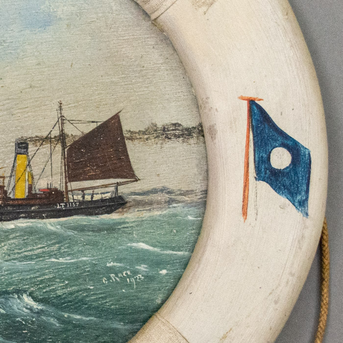 Of particular interest are works by the local “pierhead” painters, who specialized in portraits of ships for the seamen who crewed them. Typically, the paintings were of a broadside view with the sails set, and although free from formal painting techniques they are exact and generally technically accurate. The pierhead painters worked quickly — so that their prospective clients had not left port before the paintings were finished and sold!