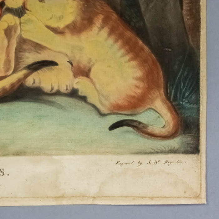 Samuel William Reynolds (1773-1835) was a mezzotint engraver and landscape painter popular in both Britain and France. He studied in the schools of the Royal Academy and trained under the famed mezzotint engravers Charles Howard Hodges and John Raphael Smith. Reynolds was a prolific engraver, known for his ability to combine techniques with ease, and commonly engraved Northcote’s animal paintings as well as portraits by contemporaries such as Sir Joshua Reynolds, and Old Masters. Today, there are over 400 examples of his works in the collection of the National Portrait Gallery, London.