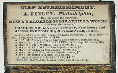 “Little is known about his background, but he was probably born around 1790. Judging from contributors to his atlases, he apparently moved in the same Philadelphia circles of engravers and compilers as other contemporary publishers. Finley also borrowed freely from European sources in compiling his atlas.”