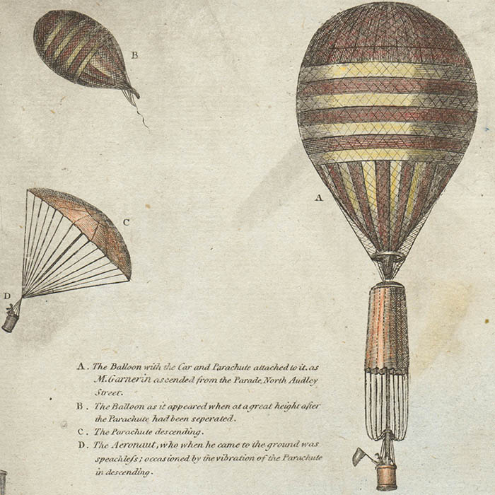 André-Jacques Garnerin was a former French military officer and an early pioneer of aeronautics. In 1797, he made the first recorded parachute descent from a hot-air balloon, using a parachute of silk, made without a rigid frame. This daring flight was publicized across Europe, sparking both scientific curiosity and public fascination. The device employed in this flight represented a critical early step in the general development of parachute technology and in aerial safety. Incidentally, the more accepted subsequently developed for technique for landing a hot-air balloon is use of a coordinated process of guiding the balloon towards a suitable landing site while controlling its descent by adjusting the burner and vent to decrease heat.