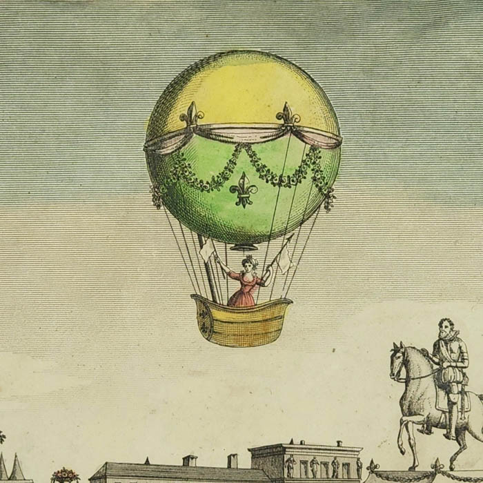 Sophie Blanchard, a pioneering balloonist of the late 18th and early 19th centuries, was a key figure in France’s early aeronautical advancements. As the first woman to make a career in ballooning, she gained widespread fame for her daring aerial performances, often executing stunts from small, fragile gondolas (baskets) and incorporating fireworks into her displays. She continued the legacy of her husband, Jean-Pierre Blanchard, a ballooning pioneer who, alongside inventor John Jeffries, made the first aerial crossing of the English Channel. Sophie became the official aeronaut of Napoleon’s court, symbolizing France’s enthusiasm for aviation and technological progress. However, her fearless performances were at great risk and on July 7, 1819, a spark from her fireworks ignited leaking hydrogen in her balloon, causing it to crash. She fell from the gondola and did not survive, marking a tragic end to here illustrious career.
