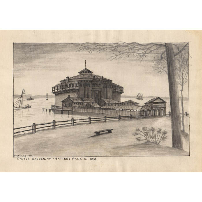 View, New York City, Battery, Castle Garden, Henry Rile, Antique Drawings, 1913-15
