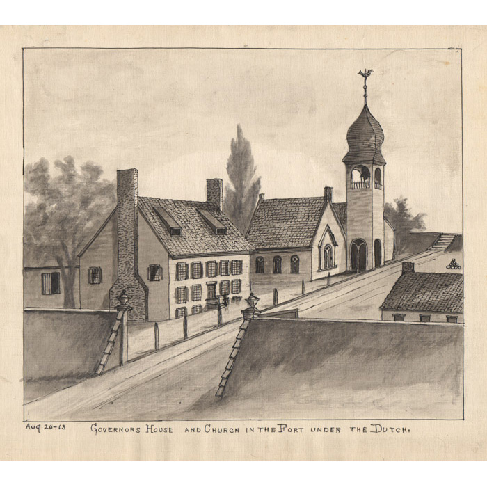 Governors House and Church in the Fort Under the Dutch